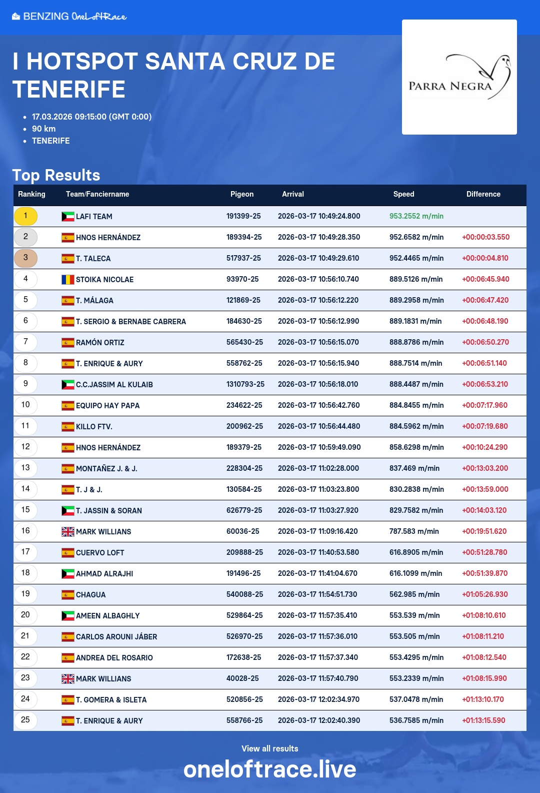 XXV ANIVERSARIO DEL PARRA NEGRA CANARIAS ONE LOFT CHALLENGE